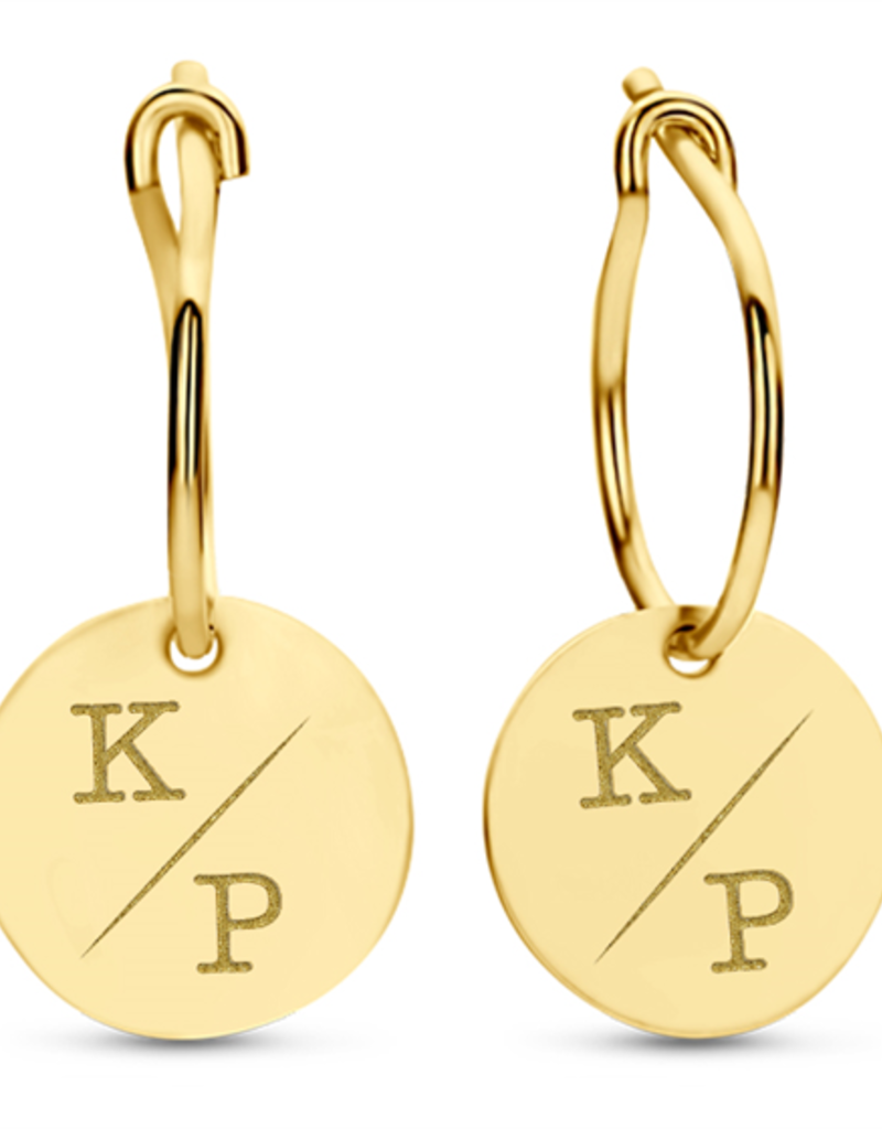 14 karaats - Gouden oorringen - Ronde hanger en initialen